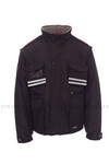 Men’s jacket with detachable sleeves, 8 mm plastic zip with metal pull, with flap fastening and plastic buttons, detachable and/or foldaway shaped hood, adjustable cuffs, grey reflective stripes on the front and back, pre-shaped elbows and side vent with gusset and zip, nine outer pockets, two with LOCK SYSTEM, two with zip and reinforced inner, one with a reversible badge holder. Padded, micro-fleece inside collar, back and lower back warmer, breathable underarm inserts, inner drawstring and zip for easier printing and embroidery.