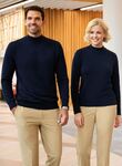 60% Cotton, 40% Acrylic 12 gauge knit Turtleneck jumper, ribbed neck, cuff and hem, contrast inner neck strip.